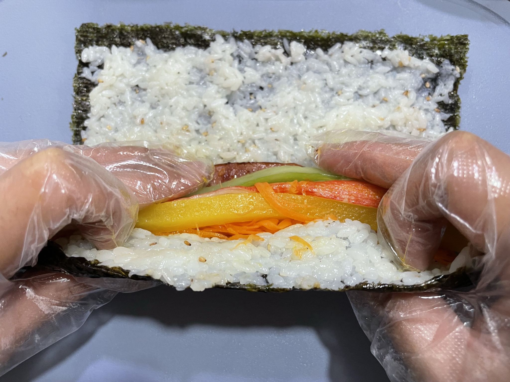 예전에는 김발을 많이 썼었는데 요즘은 그냥 김발 없이 손으로 말아도 괜찮아요.