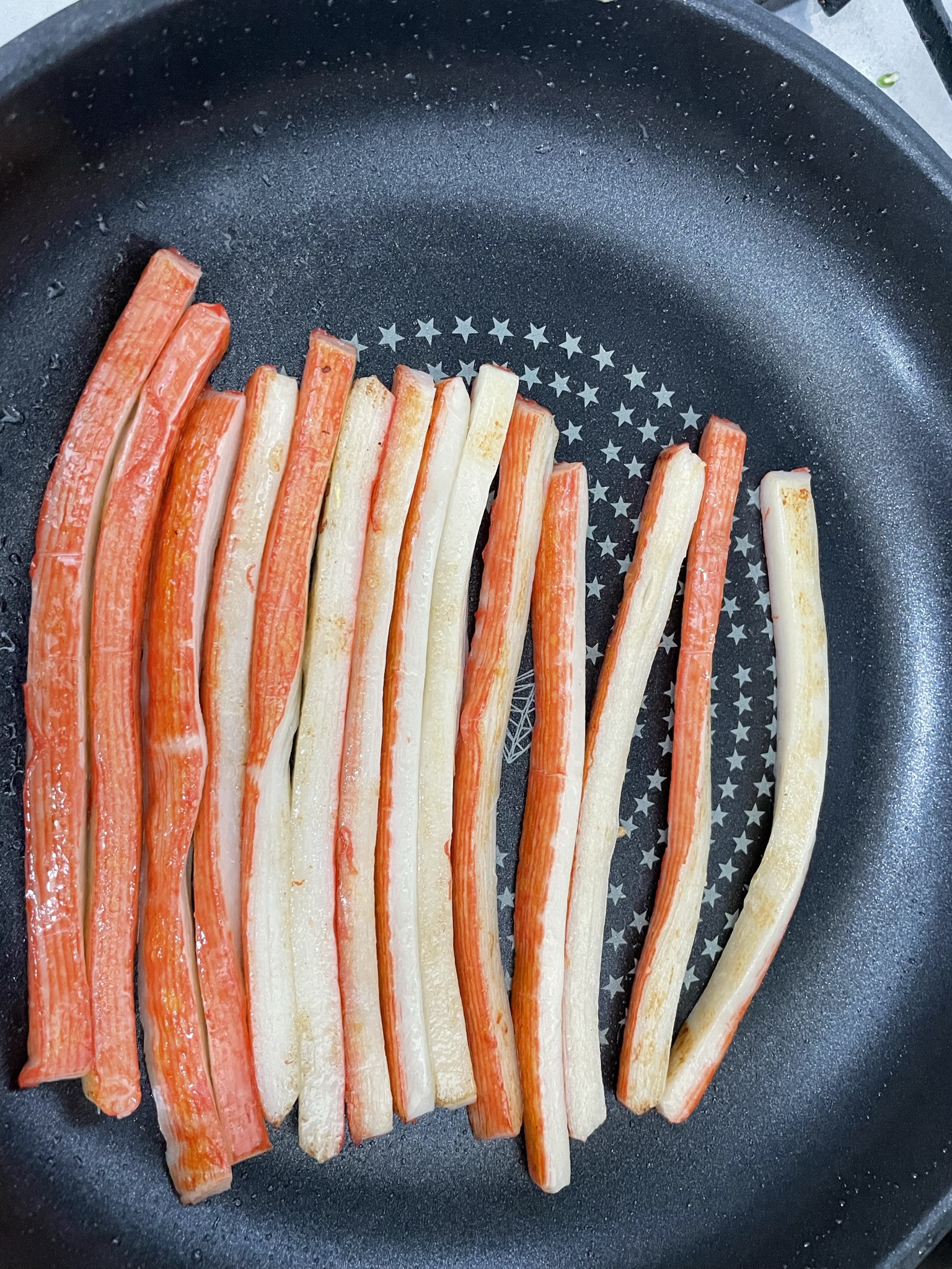 맛살은 코팅팬이 아니거나 오래 볶으면 찢어질 수 있어요.