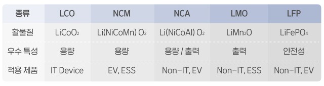 전기차에 사용되는 리튬이온 배터리에는 NCA, NCM, LMO, LFP 양극재가 사용됩니다.